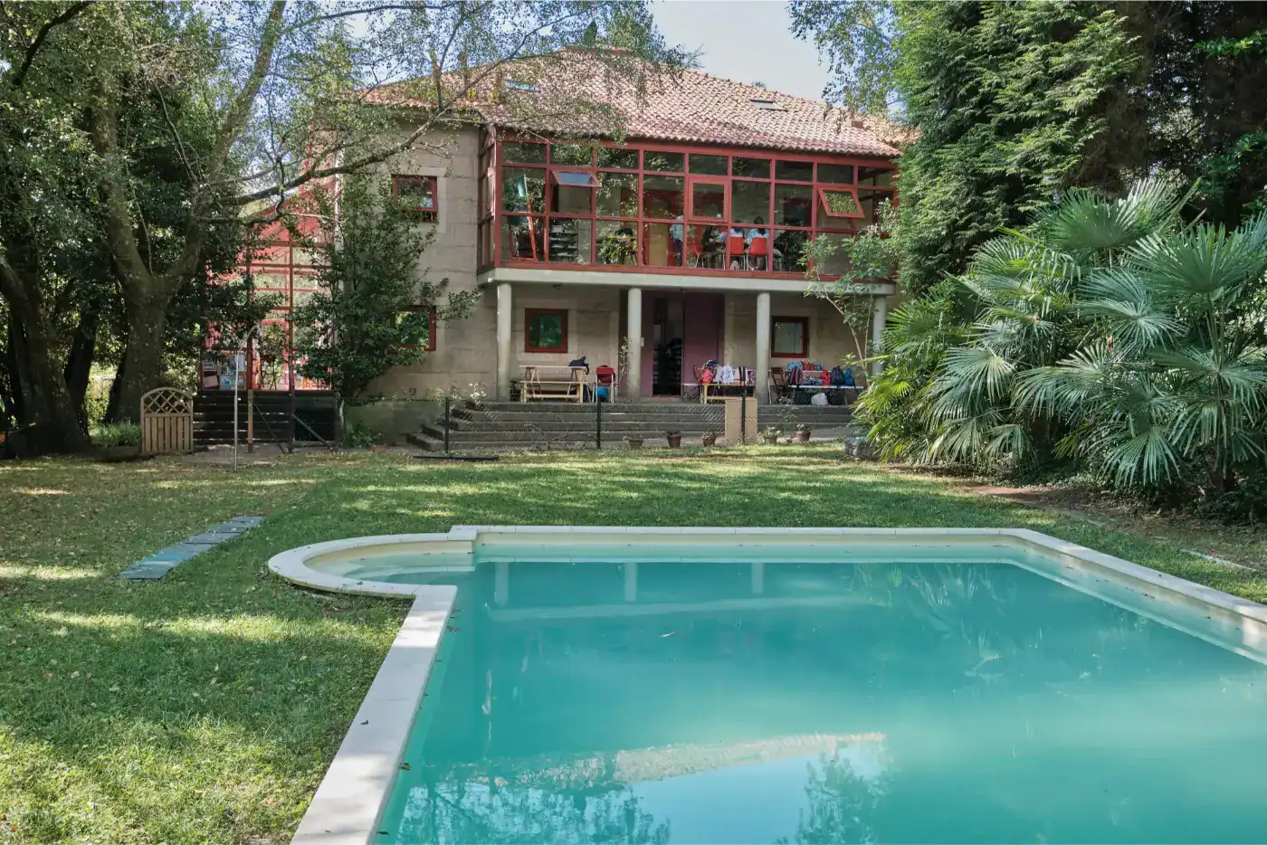 The campus features great facilities for sports and recreation, including a tennis court, several sports fields, an outdoor swimming pool and extensive gardens, offering plenty of space for games, activities and relaxation.